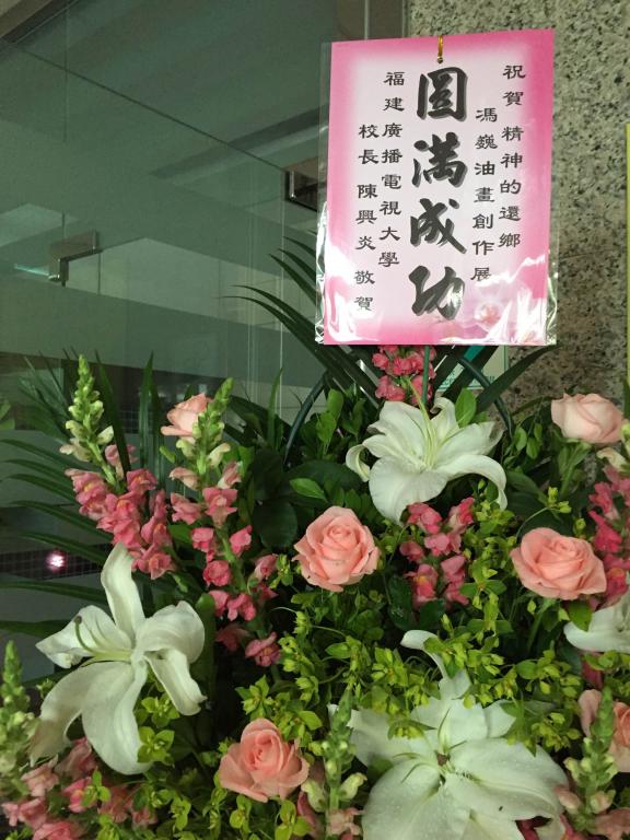 校长陈兴炎代表学校为画展赠送了花篮表示祝贺。