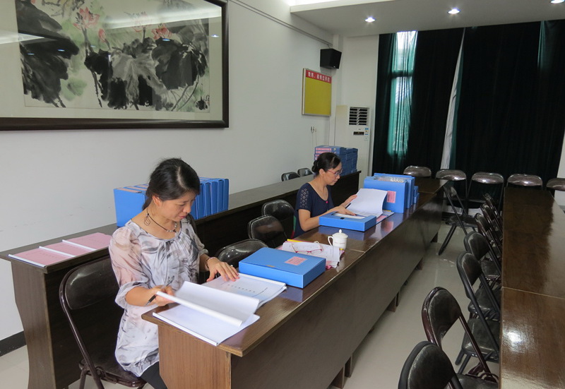 专家组成员查阅档案材料