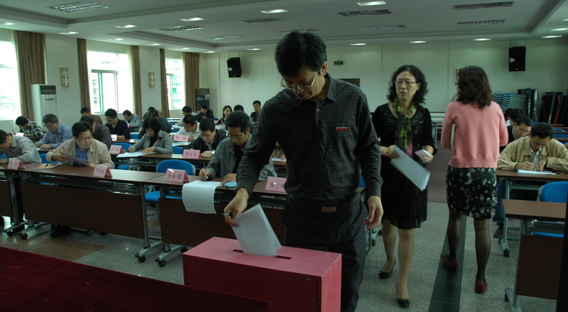 处级中层干部认真仔细地填写了民主测评表,并现场投入计票箱。