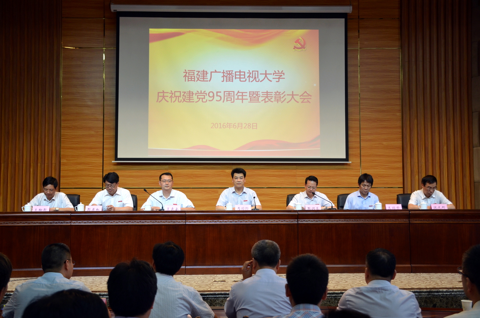 6月28日下午,学校在桂山校区博厚楼会议厅隆重召开庆祝中国共产党成立95周年暨表彰大会。党委书记马国防出席并讲话。校领导班子成员、处科级干部、各级基层党组织委员、受表彰对象,以及党务工作部门140余人参加大会。党委副书记、校长陈兴炎主持会议。