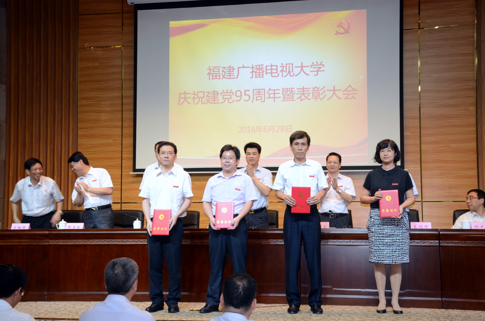 会议在庄严热烈的气氛中进行,党委副书记夏良玉宣读表彰决定。福建省高校优秀共产党员马成斌,招生办公室等5个先进基层党组织、黄生春等24名优秀共产党员、薛峰等5名优秀党务工作者受到表彰。经久不息的掌声为先进点赞,为模范喝彩。